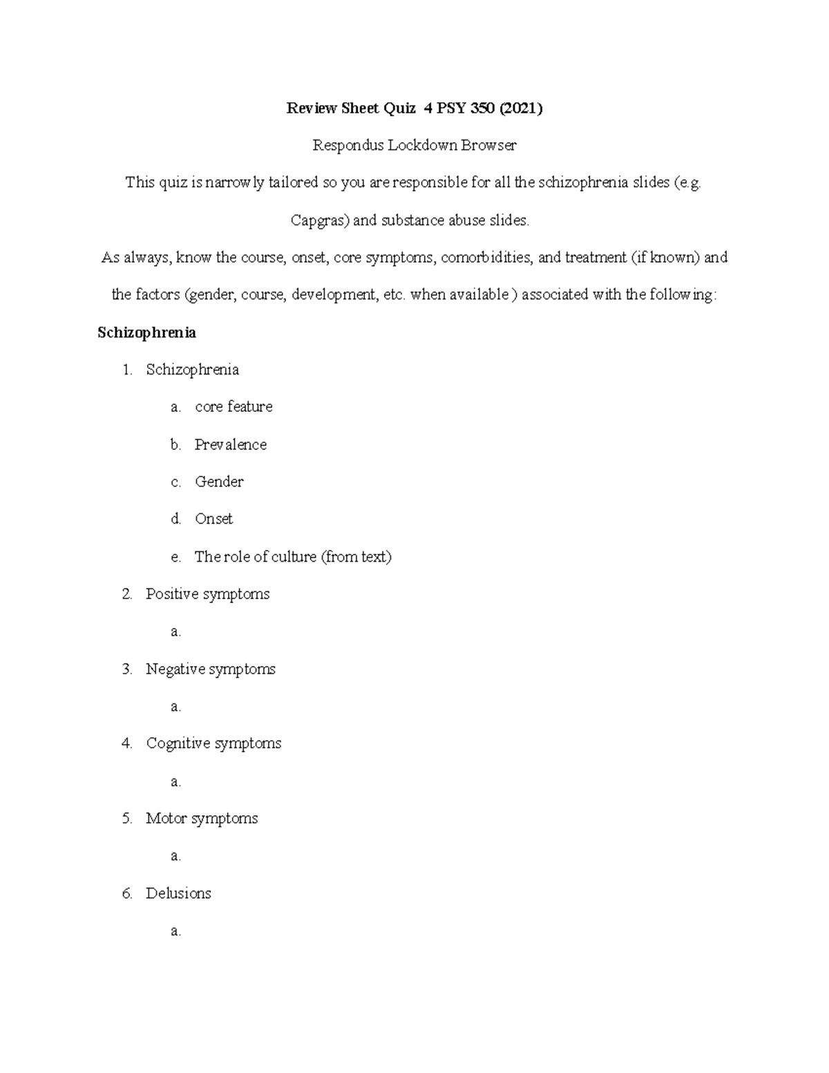 Copy Of Quiz 4 Copy Of Test Review Sheet Quiz 4 Psy 350 2021 Respondus Lockdown Browser This Studocu
